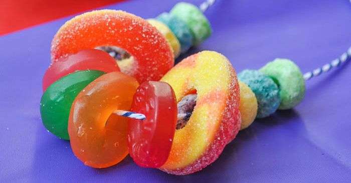 Δύο αγάπες των κοριτσιών μαζί: τα κοσμήματα και τα γλυκά. Αγοράστε ζαχαρωτά με κενό στη μέση, περάστε τα από ένα κορδόνι και χαρίστε τα στις καλεσμένες σας.