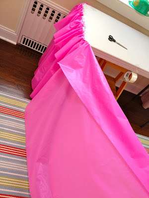 Σε ένα κοριτσίστικο πάρτι, το ροζ κυριαρχεί. Πάρτε ένα πλαστικό ροζ τραπεζομάντηλο ή κομμάτια από ροζ γκοφρέ χαρτί (που είναι πολύ οικονομικό) και τυλίξτε το τραπέζι. Δείτε αναλυτικά στις φωτογραφίες: