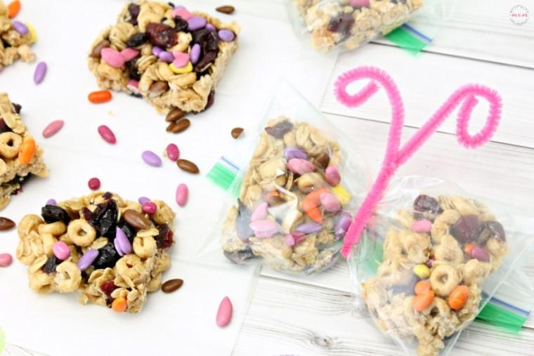 Οι μπάρες δημητριακών (ιδιαίτερα οι σπιτικές) είναι ένα σνακ που δεν πρέπει να λείπει από το διατροφολόγιο του μαθητή. Με βασικά τους συστατικά τα δημητριακά και τους ξηρούς καρπούς δίνουν στο μαθητή τα πολύτιμα ωμέγα 3 λιπαρά οξέα τα οποία βοηθούν στην καλή υγεία του καρδιαγγειακού συστήματος και στην λειτουργία του εγκεφάλου. Επιπλέον οι ξηροί καρποί περιέχουν βιταμίνες, μέταλλα, ιχνοστοιχεία αλλά και πρωτεΐνη, συστατικά τα οποία βοηθούν τον οργανισμό να παράγει ενέργεια. Επιλέγοντας να φτιάξετε τις μπάρες βάσει των προτιμήσεων του παιδιού σας μπορείτε να κάνετε την ανατροπή ως προς τον τρόπο που θα τις πακετάρετε για το σχολείο. Θα βάλετε τις μπάρες σε ένα αεροστεγές σακουλάκι το οποίο θα στριφογυρίσετε όπως δείχνει η εικόνα και θα το κλείσετε με ένα σύρμα πίπας χειροτεχνίας δημιουργώντας μια ξεχωριστή …δυναμωτική πετελούδα.