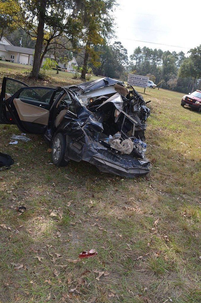 Το σοβαρό ατύχημα συνέβη στην πόλη Wakulla County, στη Φλόριντα των ΗΠΑ. Όπως μπορείτε κι εσείς να δείτε η πρόσκρουση ήταν τόσο σφοδρή που από το αυτοκίνητο δεν έμεινε σχεδόν τίποτα. Με μια πρώτη ματιά μάλιστα, η ζημιά είναι τόσο σοβαρή που είναι δύσκολο να φανταστεί κανείς ότι από αυτό το αυτοκίνητο – πόσο μάλλον από τα πίσω καθίσματα – βγήκαν επιζώντες.