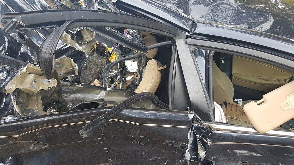 Η κορυφή του αυτοκινήτου μετά βίας αναγνωρίζεται μετά την πρόσκρουση.