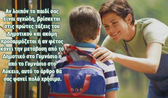 Αν λοιπόν το παιδί σας είναι αγχώδη, βρίσκεται στις πρώτες τάξεις του Δημοτικού και ακόμη προσαρμόζεται ή αν φέτος κάνει την μετάβαση από το Δημοτικό στο Γυμνάσιο ή από το Γυμνάσιο στο Λύκειο, αυτό το άρθρο θα σας φανεί πολύ χρήσιμο.
