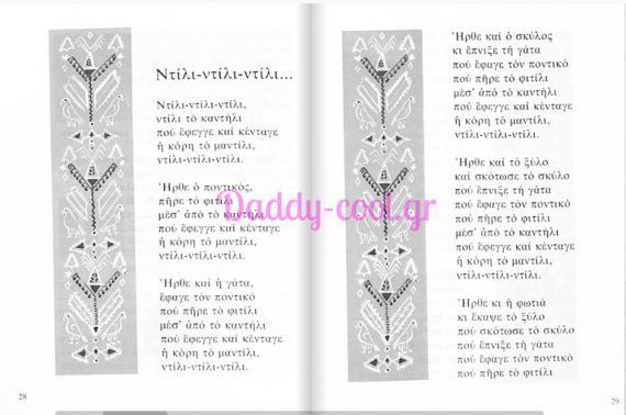 Ντίλι-ντίλι-ντίλι, ντίλι το καντήλι που έφεγγε και κένταγε η κόρη το μαντίλι, ντίλι-ντίλι-ντίλι.
