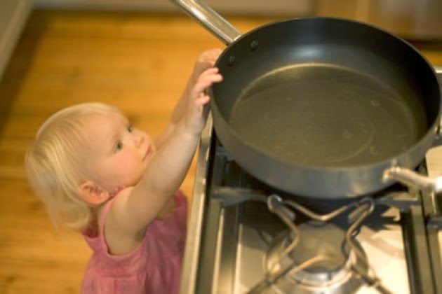 Να μαγειρεύετε κατά προτίμηση στις πίσω εστίες της ηλεκτρικής κουζίνας, με τα χερούλια των σκευών γυρισμένα προς τα μέσα.(Δειτε τη φωτογραφια ποσο ευκολο ειναι να γινει το κακο)