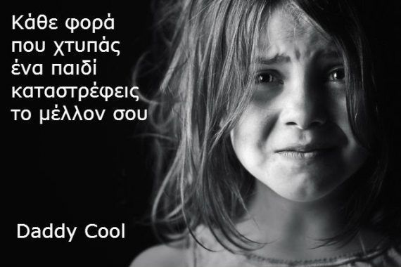 Μην ξεχνάμε πως το μέλλον μας είναι τα παιδιά μας.Σε εκείνα έχουμε εναποθέσει τις ελπίδες μας για ένα καλύτερο αύριο.Σκεφτείτε λοιπόν πως κάθε φορά που χτυπάτε ένα παιδί είναι σαν ρίχνετε και μια σφαίρα στο μέλλον.
