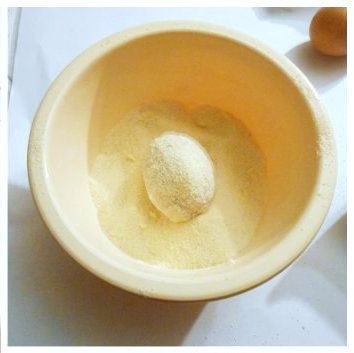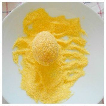 Ρολάρουμε το αυγό στο σιμιγδάλι καλαμποκιού.