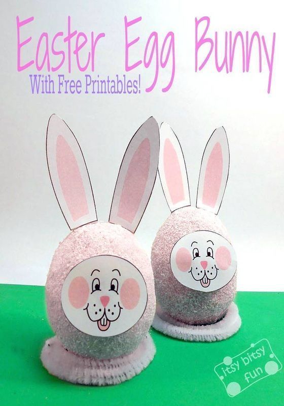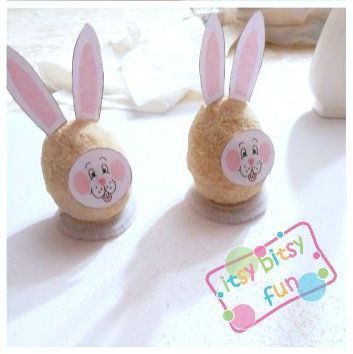 Κόψτε τα πρόσωπα λαγουδάκι και τα αυτιά και κολλήστε τα στα αυγά (μπορείτε να χρησιμοποιήσετε κόλλα από ασπράδι αυγού ή λευκή κόλλα).Τυλίξτε στην βάση τους τον σωλήνα καθαρισμού.Είναι έτοιμα!