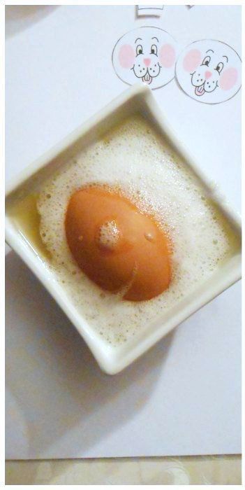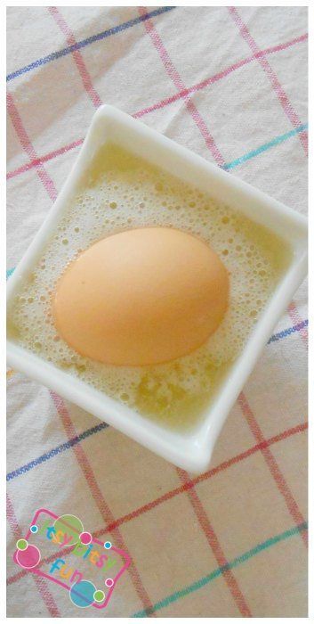 Βάλτε το αυγό στην λευκή κόλλα ζάχαρης – βεβαιωθείτε ότι θα καλυφθεί με το μείγμα ολόκληρο.