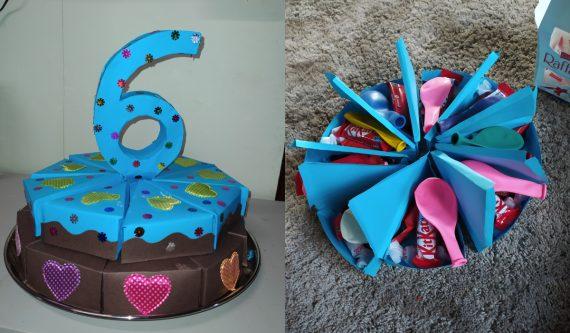 Χάρτινη τούρτα για κέρασμα στο σχολείο. Πλησιάζουν τα γενέθλια του αγγελουδιού σας και θέλετε να κάνετε κάτι διαφορετικό; Μπορείτε αντί για μία κλασική τούρτα, να δημιουργήσετε μία χάρτινη τούρτα με φθηνά υλικά και να γεμίσετε το κάθε κομμάτι της τούρτας με κεράσματα, δώρα, κέικ, γλυκά, ή ότι άλλο έχετε φανταστεί.