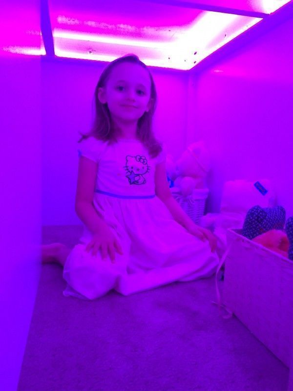 Ήθελε την αίθουσα του παιχνιδιού να έχει ροζ λάμψη, οπότε πρόσθεσε μερικά φώτα LED στο έργο του. Είναι διπλή η διασκέδαση αν παίζεις κάτω από το κρεβάτι με ροζ φωτισμό!