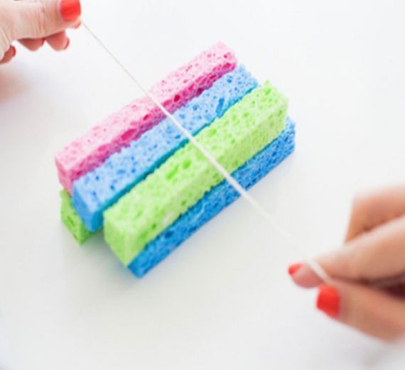 Χρησιμοποιήστε τον χάρακα και το μαρκαδόρο για να σχεδιάσετε ίσες λωρίδες.Κόψτε έπειτα το σφουγγάρι σας όπως στην παρακάτω φωτογραφία.