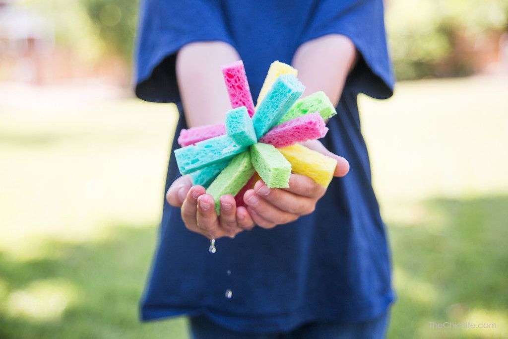 Τα παιδιά έχουν εμμονή με τα μπαλόνια νερού,τις λεγόμενες νερόμπομπες. Είναι η αγαπημένη τους δραστηριότητα το καλοκαίρι. Δυστυχώς όμως όταν τα παιδιά είναι μικρά δεν μπορούν να δέσουν μόνα τους τα μπαλόνια.Είναι πολύ εκνευριστικό να δένεις με τις ώρες τα μπαλόνια για να σκάσουν μέσα σε 0,5 δευτερόλεπτα. Έτσι φέτος, στο αγαπημένο site thechicsite βρήκα μια καταπληκτική ιδέα για επαναχρησιμοποιήσιμαες βόμβες νερού! Βασικά το μόνο που πρέπει να κάνουμε είναι να κόψουμε λωρίδες από πολύχρωμα σφουγγάρια και voila … Νερόμπομπες από σφουγγάρι!