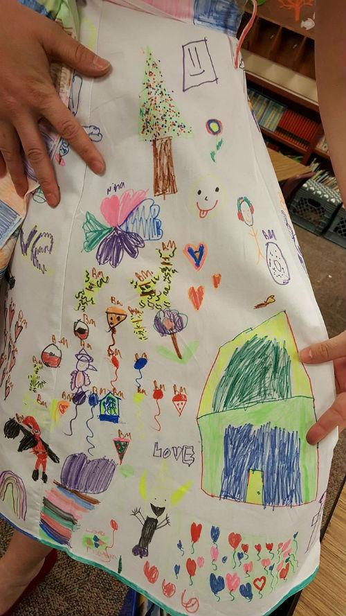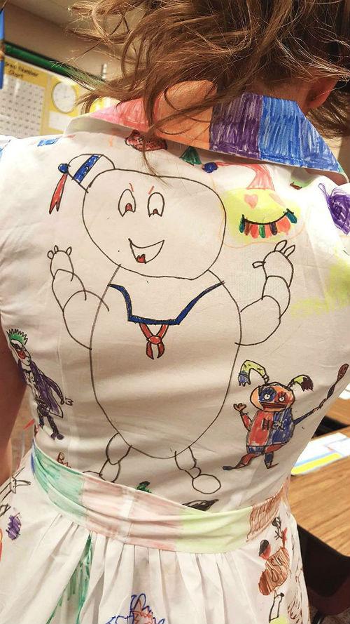 Μερικές φορές το να δώσεις σε παιδιά ηλικίας 8 ετών χρώματα και μαρκαδόρους δεν οδηγεί σε καταστροφή! Στην πραγματικότητα, μπορεί να οδηγήσει σε ένα όμορφο έργο τέχνης! Αυτό ακριβώς συνέβη με την Haley Curfman, μια δασκάλα β’ δημοτικού στο Blackwell της Οκλαχόμα. Η Haley αγόρασε ένα όμορφο λευκό φόρεμα, το έφερε στην τάξη της και ενθάρρυνε τους μαθητές να το ζωγραφίσουν. Ο μόνος κανόνας που είχε ήταν να μην ζωγραφίζουν πάνω στις άλλες ζωγραφιές. Το αποτέλεσμα ήταν τόσο καταπληκτικό που έγινε viral.
