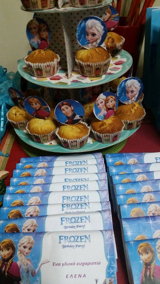 ΣΟΚΟΛΑΤΕΣ FROZEN Αγοράσα σοκολατες αμυγδαλου και σοκολατες γαλακτος (για τα παιδακια που εχουν αλλεργια στους ξηρους καρπους) εβγαλα το περυτιλιγμα τους κ τις αφησα μοναχα με το αλουμινοχαρτο,κατοπιν εκτυπωσα απο printables το θεμα που ηθελα και στις διαστασεις της σοκολατας και το κολλησα με απλη κολλα. ΝΕΡΑ FROZEN Απλα εβγαλα τις ετικετες που ειχαν ηδη τα εμφιαλωμενα νερακια και εκτυπωσα σε αυτοκολλητο ετικετα για νερα απο printables.