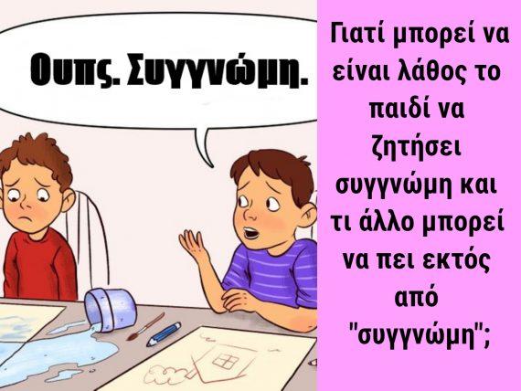 Γιατί το να ζητάς από το παιδί να πει Συγγνώμη σε μερικές περιπτώσεις είναι λάθος. Πολλοί γονείς επιβάλλουν στα παιδιά τους να πουν συγγνώμη όμως αυτό μπορεί να είναι και λάθος. Τι πρέπει να πουν τα παιδί αντί για συγγνώμη;