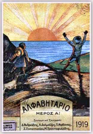 Το πρώτο αναγνωστικό με το όνομα, Αλφαβητάριο, κυκλοφόρησε το 1919 και ήταν μέρος της εκπαιδευτικής μεταρρύθμισης του Ελευθέριου Βενιζέλου, σύμφωνα με την οποία η δημοτική γλώσσα θα διδασκόταν στα σχολεία. Έμεινε γνωστό σαν «το Αλφαβητάρι με τον Ήλιο», λόγω του εξωφύλλου του που επιμελήθηκε μαζί με την υπόλοιπη εικονογράφηση ο Κ. Μαλέας. Η συντακτική ομάδα αποτελούνταν από τους Δ. Ανδρεάδη, Αλ. Δελμούζο, Μ. Τριανταφυλλίδη, Π. Νιρβάνα και Ζ. Παπαντωνίου….