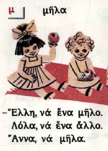 Το αγαπημένο αναγνωστικό των Ι.Κ. Γιανέλη και Γ.Σακκά, παρακολουθεί τη ζωή μιας μικροαστικής οικογένειας. Ο μπαμπάς Θωμάς, η μητέρα Φανή, η Άννα, ο Ρήγας, Νίνα, είναι μερικοί από τους πρωταγωνιστές του βιβλίου. Η πιο διάσημη βέβαια είναι η Λόλα και το μήλο της. Η Λόλα ήταν η πρωταγωνίστρια του προηγούμενου αναγνωστικού του 1949, με τίτλο «τα καλά παιδιά». Τα δύο αναγνωστικά φιλοτέχνησε ο Κώστας Γραμματόπουλος και η Λόλα, που είχε γίνει αγαπημένη ηρωίδα των μαθητών, διατηρήθηκε και στις δύο εκδόσεις. – Λόλα να ένα άλλο (μήλο) έγραφε το Αλφαβητάριο στη σελίδα που οι μικροί μαθητές διδάσκονταν το γράμμα μι «μ».