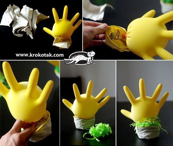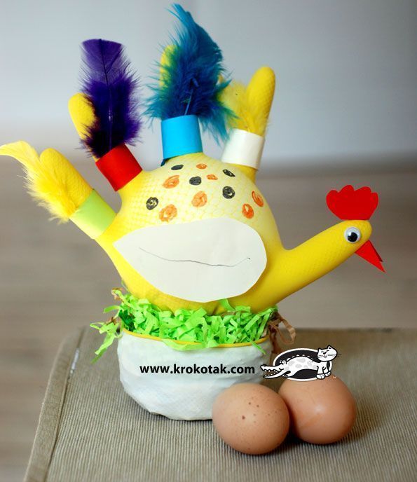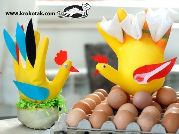 Είδα αυτή την κατασκευή και έμεινα άφωνη ! Τελικά αν έχεις φαντασία μπορείς με απλά καθημερινά πράγματα να φτιάξεις υπέροχες κατασκευές!Φτιάξτε μια κοτούλα με ένα πλαστικό γάντι πανεύκολα και ξετρέλανε τα παιδιά.