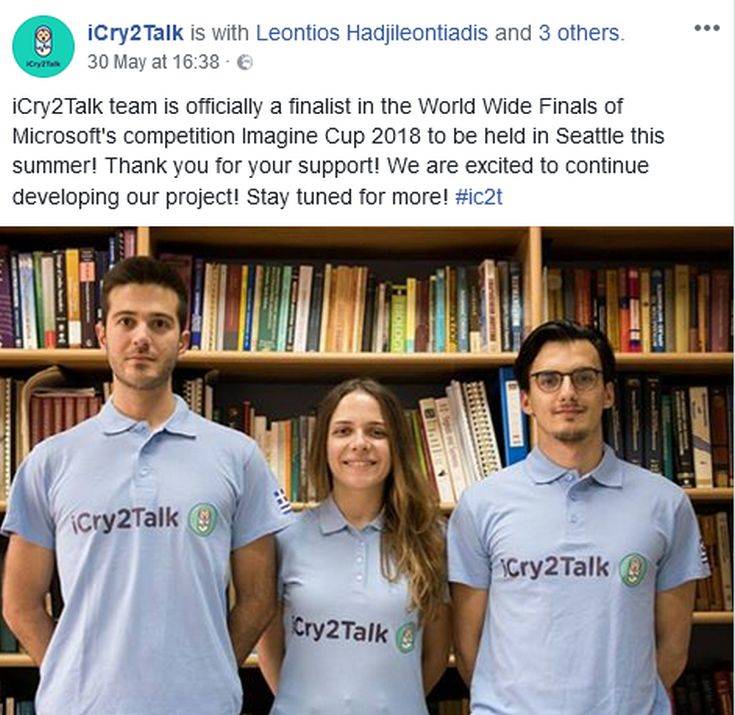 Η iCry2Talk του ΤΗΜΜΥ του Αριστοτελείου μετέχει στον Παγκόσμιο Τελικό διαγωνισμού της Microsoft«Imagine Cup 2018»