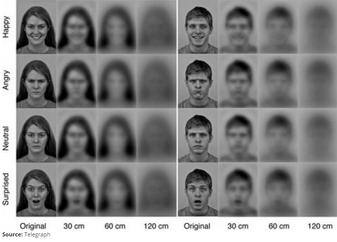 Οι ενήλικοι συμμετέχοντες αναγνώρισαν σωστά τις εκφράσεις του προσώπου σε τρεις από τις τέσσερις περιπτώσεις κατά την προβολή του βίντεο σε απόσταση 12 ιντσών. ”