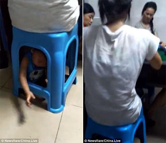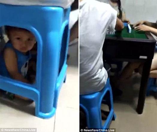 Μια μητέρα από την Κίνα έχει προκαλέσει δημόσια κατακραυγή μετά την δημοσίευση ενός βίντεο που την δείχνει να έχει εγκλωβίσει τον γιο της κάτω από ένα πλαστικό σκαμπό για να παίξει Μαγιόνγκ με τις φίλες της.