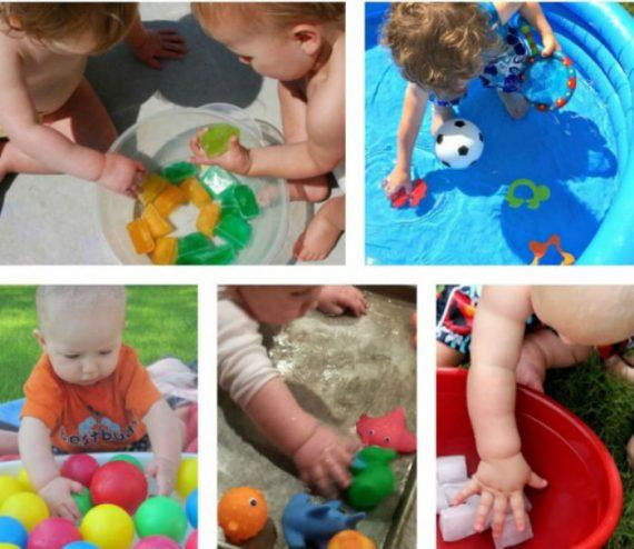 Βάλτε το μωρό σε φουσκωτή παιδική πισίνα. Ένας άλλος τρόπος διασκέδασης για το μωρό είναι να το βάλετε μέσα στην παιδική μπανιέρα του με νερό και τα παιχνίδια του. Βάλτε μουσική και χορέψτε στην αυλή. Παίξτε κάνοντας σαπουνόφουσκες.