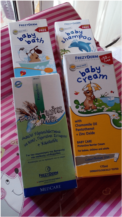 Tα προϊόντα που χρησιμοποιώ στη μπουμπού μου, τα χρησιμοποιούσα και στη μεγάλη μου τη κόρη και τα επέλεξα ξανά χωρίς δεύτερη σκέψη.(τα έχω στη φώτο παρακάτω) Εντάξει κορίτσια η μυρωδιά αυτή ΔΕΝ ΥΠΑΡΧΕΙ!!! Στη μεγάλη μου τη κόρη είχα δοκιμάσει πολλά πριν καταλήξω σε αυτά. Τώρα στη μπουμπού πήραμε την ολοκληρωμένη σειρά και με το που άνοιξα το αφρόλουτρο, μου ήρθανε όλες οι αναμνήσεις που είχα από το μεγάλο μου παιδί όταν ήταν και αυτό μωράκι και δεν σας κρύβω πως δάκρυσα! Είναι τόσο χαρακτηριστική αυτή η μυρωδιά που πιστέψτε με θα σας μείνει αξέχαστη. Και δεν είμαι καθόλου υπερβολική. Αφού το γαλάκτωμα το χρησιμοποιώ και ‘γω για τα χέρια μου επειδή άνοιξαν από το πολύ οινόπνευμα που χρησιμοποιούσα και είναι το μόνο που ανέχομαι χωρίς να με τσούξουν.