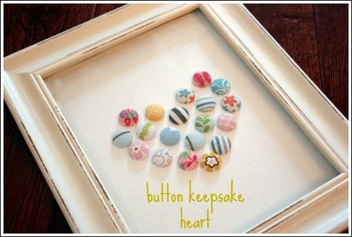 Απλά κολλήστε τα κουμπιά από τα αγαπημένα ρούχα του μωρού σας και κολλήστε τα σε ένα κάδρο σε σχήμα καρδιάς.Δείτε την κατασκευή εδώ babble