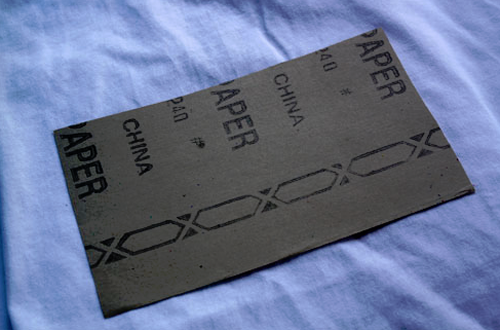 Όταν η ζωγραφιά είναι έτοιμη τοποθετείστε το γυαλόχαρτο με την μεριά της εικόνας επάνω στο σημείο του t-shirt που θέλετε να αποτυπωθεί.