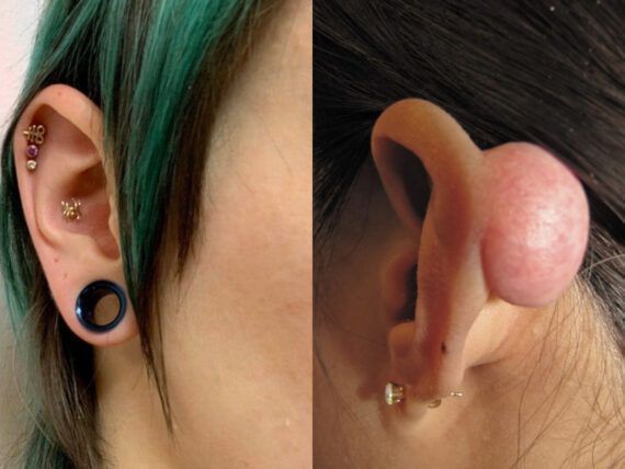 Στις επιπλοκές συμπεριλαμβάνονται οι αλλεργικές δερματίτιδες από το υλικό κατασκευής του κοσμήματος, η αιμορραγία και ο σχηματισμός υπερτροφικής ουλής – χηλοειδούς», επισημαίνει ο πλαστικός χειρουργός προσώπου – ΩΡΛ Δρ. Γεώργιος Μοιρέας.