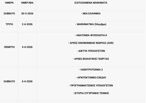 Πρόγραμμα πανελλαδικών εξετάσεων 2026 ημερήσιων και εσπερινών ΕΠΑΛ