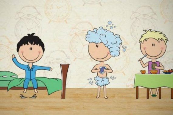 Πήγαινε στο μπάνιο, πλύνε το πρόσωπό σου, χρησιμοποίησε την τουαλέτα και μην ξεχάσεις το καζανάκι. Στρώσε το κρεβάτι. Φάε πρωινό. Ντύσου, πλύνε δόντια και χτενίσου. Μετά το Σχολείο
