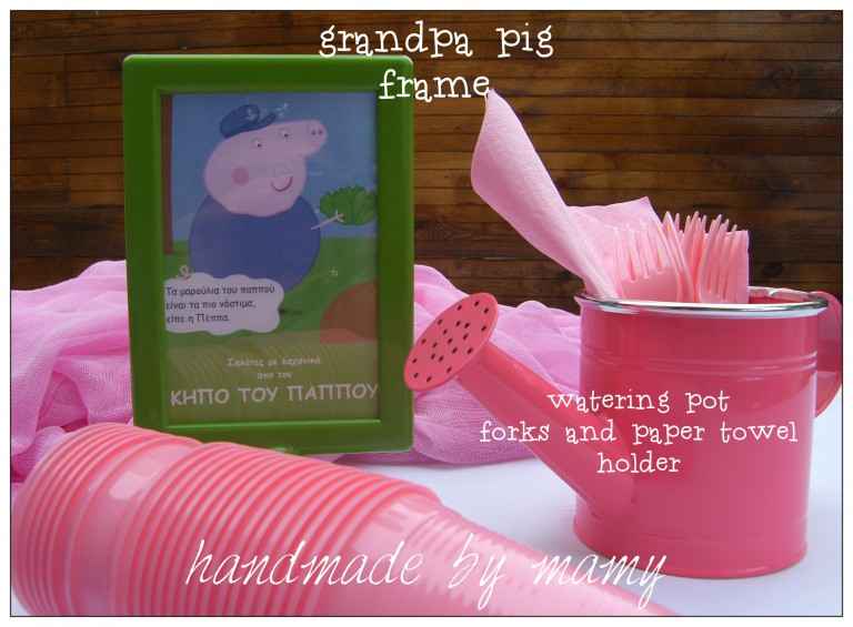 Ένα ποτιστήρι απο τον κήπο του παππού γουρουνάκι φιλοξένησε τα πιρούνια και τις χαρτοπετσέτες.