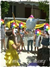 Η κυρία Πότ ήταν η έμπνευση της πινιάτας μας αυτή την φορά, τα χωνάκια έτοιμα να γεμίσουν με γλυκά και η διαδικασία για να τα αποκτήσουν ξεκαρδιστική οι φωνούλες τους ξεχύθηκαν σε όλη την γειτονιά κάθε φορά φώναζαν το όνομα του φίλου που χτυπούσε την πινιάτα για να τον ενθαρρύνουν και να πετύχουν το στόχο να πλημμυρίσει το πάτωμα γλυκά και να ξεχειλίσουν τα χωνάκια τους!!!