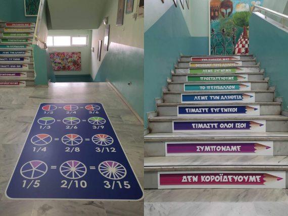 Έτσι οι γονείς από την Θεσσαλονίκη αλλά και οι εκπαιδευτικοί έβαλαν όλο το μεράκι τους και ζωγράφισαν στα δάπεδα του σχολείου επιτραπέζια παιχνίδια αλλά και όμορφα μηνύματα. Αυτά τα μηνύματα υπάρχουν στις σκάλες του σχολείου αλλά και στα δάπεδα.