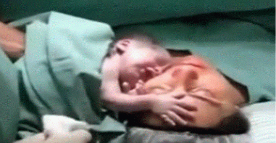 Eνα μωράκι που μόλις έχει γεννηθεί αγκαλιάζει τη μαμά του όπως μπορεί με τα μικρούτσικα χεράκια του και κλαίει γιατί δεν θέλει να την αφήσει!