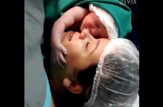 Viral έγινε το βίντεο που δείχνει ένα νεογέννητο κοριτσάκι να έχει κολλήσει το προσωπάκι της στο μάγουλο της μαμάς της, αλλά να αγκαλιάζει και με το χεράκι της το πρόσωπο της μαμάς της και να μη λέει να το αφήσει.