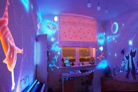 Μπορείτε, επίσης, να χρησιμοποιήσετε σπρέι που φωσφορίζουν στο σκοτάδι και να δημιουργήσετε μια λαμπερή, φανταστική πόλη στο δωμάτιο του παιδιού σας.