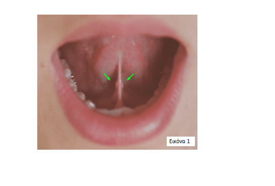 Σε βαριές μορφές η κορυφή της γλώσσας προβάλλει με το χαρακτηριστικό σχήμα καρδιάς (Εικόνα 3).
