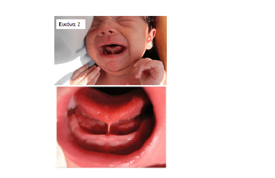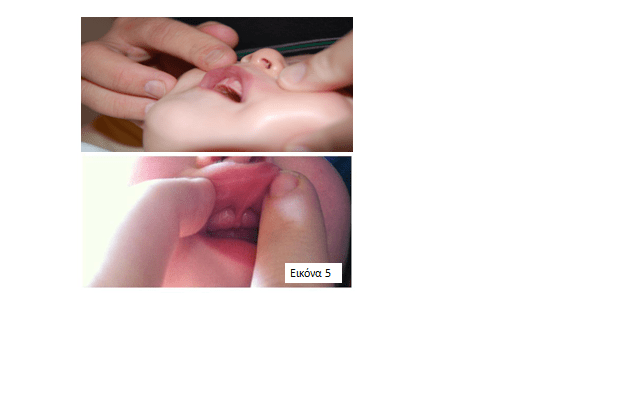 δ) Πιο σπάνια μια βαριά μορφή βραχύ χαλινού μπορεί να δημιουργεί προβλήματα σίτισης του νεογνού ακόμα και με το μπιμπερό. Λειτουργικότητα γλώσσας φυσιολογικού νεογνού και νεογνού με βραχύ χαλινό