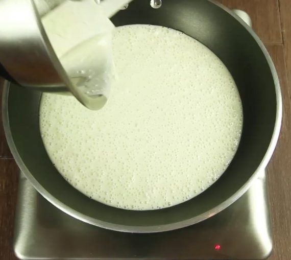 Στη συνέχεια, το υγρό, το οποίο θα σταθεροποιηθεί γρήγορα, τοποθετείστε το σε ένα τηγάνι και διατηρείστε το ζεστό σε χαμηλή φωτιά.