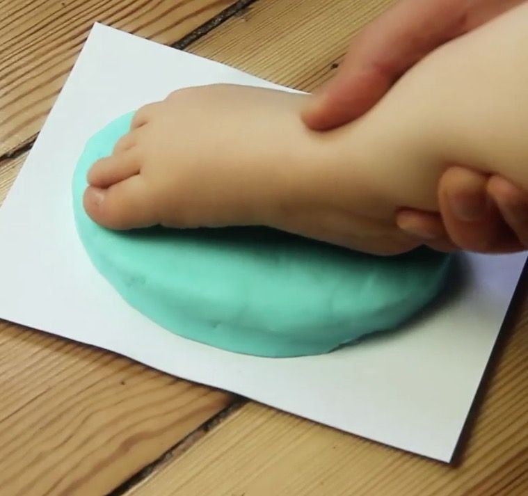 Και δείτε τι γίνεται όταν θα βάλετε και τα πόδια του παιδιού σας στο παιχνίδι. Πατήστε το πόδι του παιδιού σας ή το χεράκι του πάνω στο μείγμα ,αφήνοντας το απαλά.
