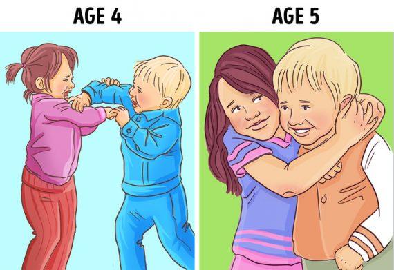Τα παιδιά που βρίσκονται στην ηλικία των 4 ετών, μπορούν να έχουν μεταβολές στην διάθεσή τους, να μαλώνουν συχνά με τα αδέρφια τους, να σας απειλούν και γενικότερα η συμπεριφορά τους να ξεφεύγει από το πλαίσιο των κανόνων σας. Αντιθέτως τα παιδιά που διανύουν την ηλικία των 5 ετών, είναι πιο ευγενικά με τους γονείς, έχουν καλύτερους τρόπους, είναι πιο υπεύθυνα και γενικά θέλουν να κάνουν τους γύρω τους ευτυχισμένους.