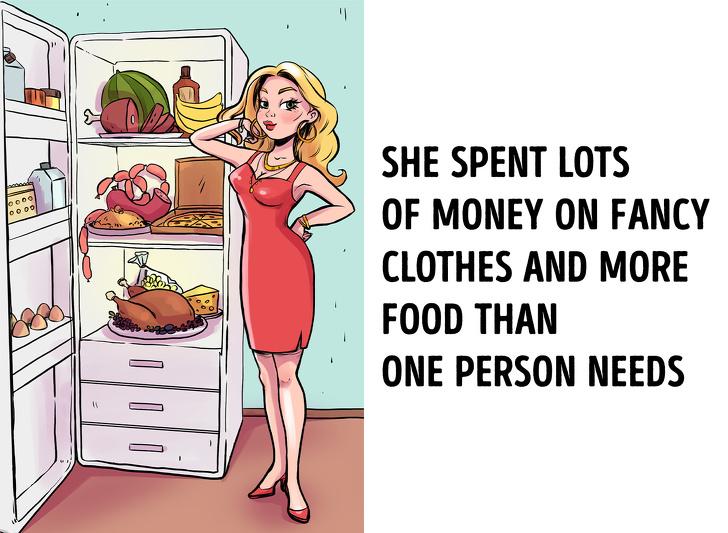 Ξόδεψε πολλά χρήματα σε ωραία ρούχα και έχει παραπάνω φαγητό από όσο χρειάζεται ένα άτομο.