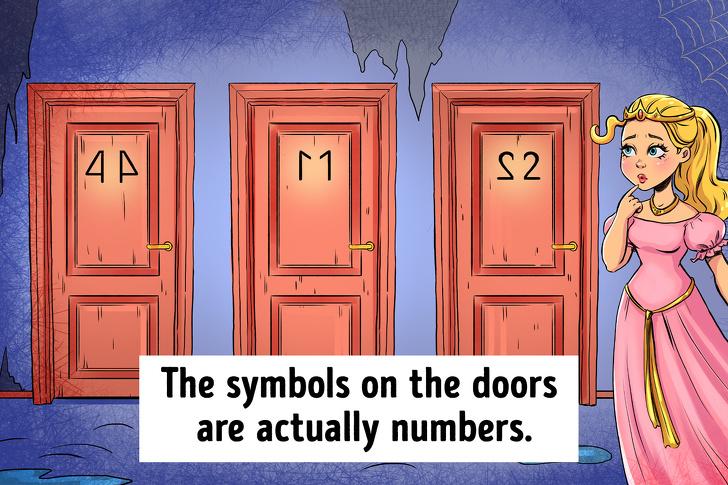 4. Πού είναι η έξοδος; Μια πριγκίπισσα βρέθηκε κλειδωμένη σε έναν πύργο. Ανακάλυψε ότι θα μπορούσε να ξεφύγει από την τέταρτη πόρτα. Αλλά υπάρχουν μόνο 3 πόρτες. Πώς μπορεί να βρει την πόρτα με τον αριθμό 4;