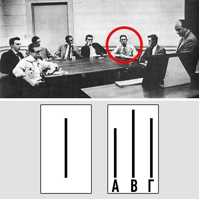 9. Η επίδραση της συμμόρφωσης του Σόλομον Ας: «Προτιμώ να συμφωνήσω με όλους παρά να διαφωνήσω.»