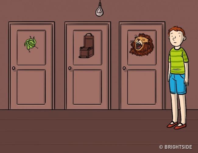 - Πίσω από την τρίτη πόρτα, υπήρχε ένα λιοντάρι που δεν είχε φάει για πολλές ημέρες. Πώς βγαίνει το αγόρι;