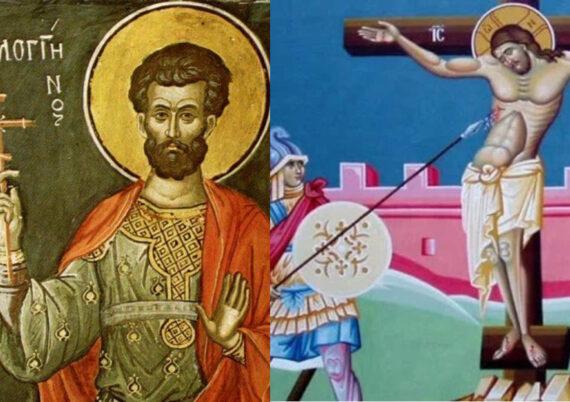 Άγιος Λογγίνος, ήταν επικεφαλής της στρατιωτικής φρουράς κατά τη σταύρωση του Χριστού, την ταφή και τη σφράγιση του τάφου Του. Η ιστορία του Ρωμαίου Εκατόνταρχου που τρύπησε με την λόγχη του τα πλευρά του Ιησού.