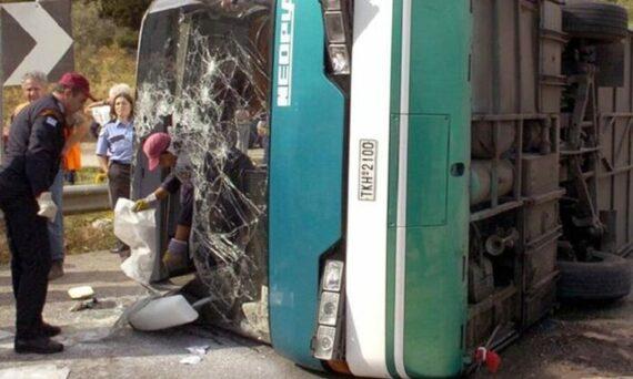 Ο οδηγός της νταλίκας, λόγω μετατόπισης του φορτίου χάνει τον έλεγχο του οχήματος, περνά στο αντίθετο ρεύμα, συγκρούεται με το λεωφορείο, το οποίο και ανατρέπεται. Επτά μαθητές θα χάσουν ακαριαία την ζωή τους και ένας θα ακρωτηριαστεί.
