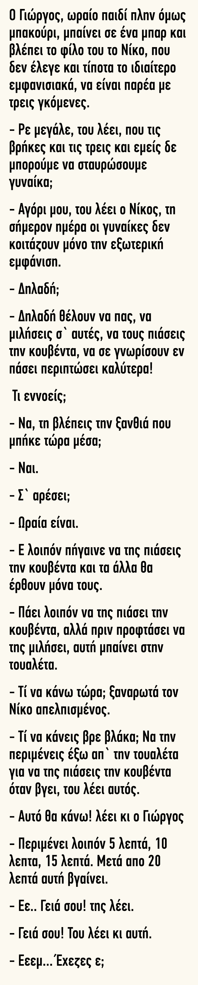Ανέκδοτο: Ο Γιώργος ωραίο παιδί πλην όμως μπακούρι μπαίνει σε ένα μπαρ